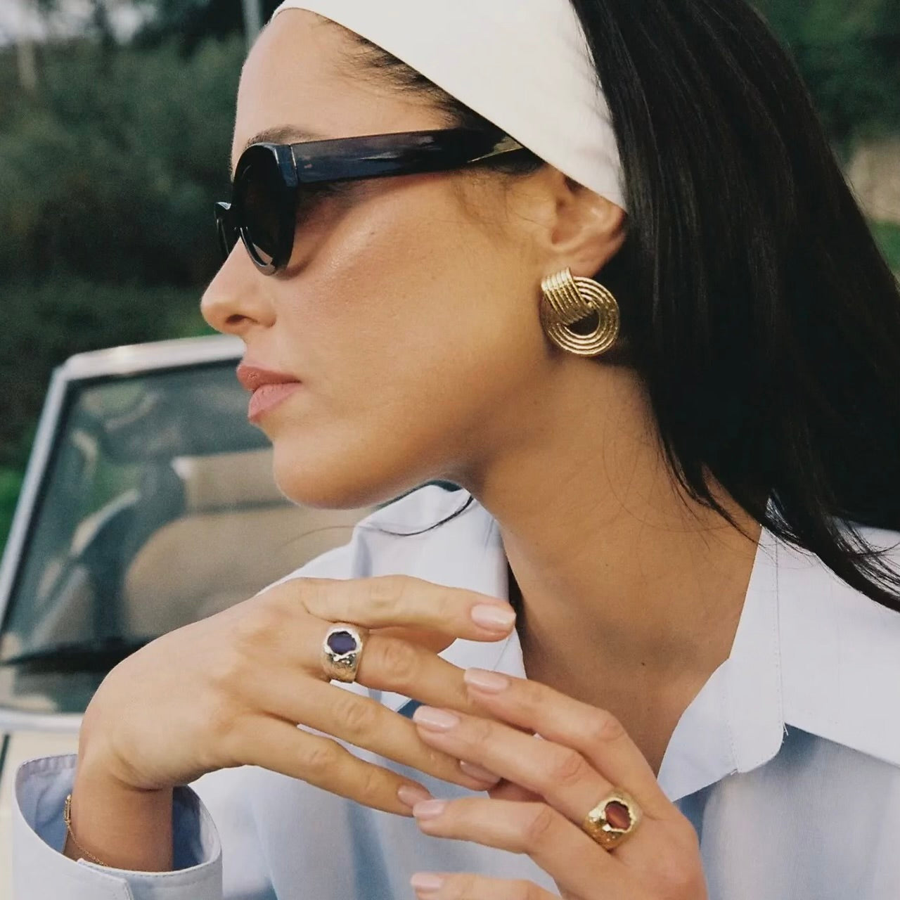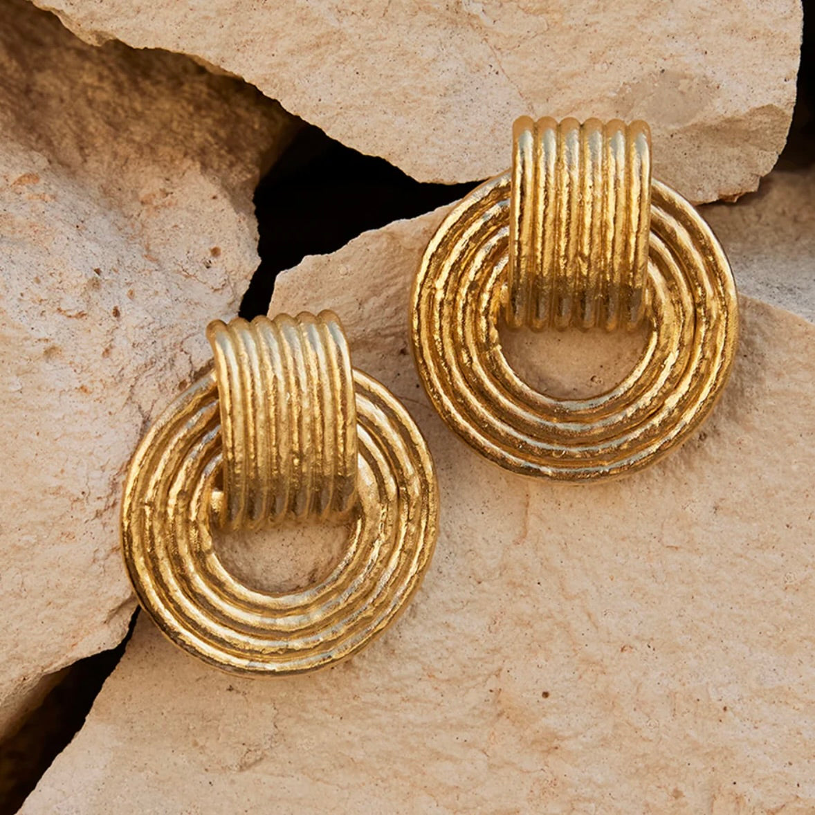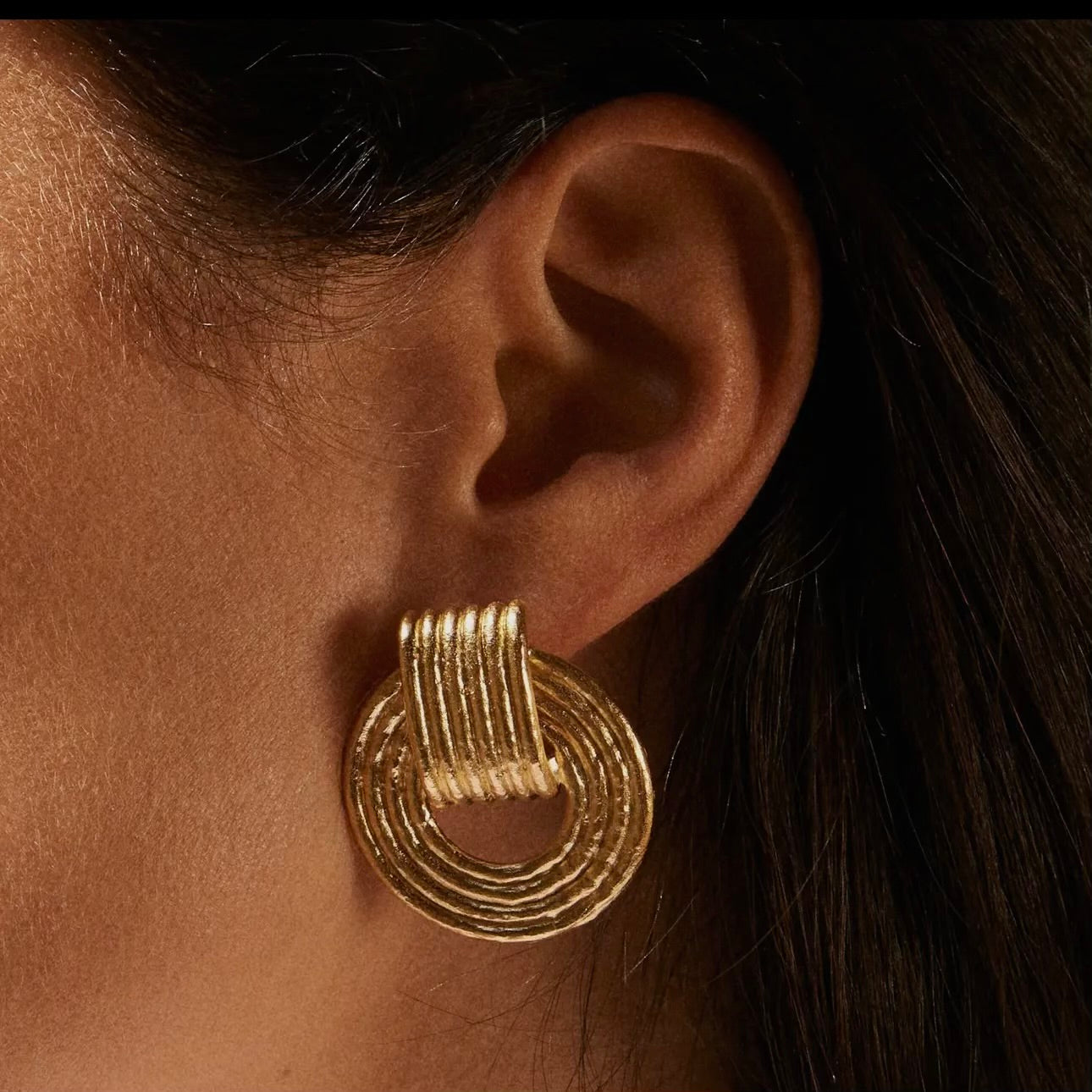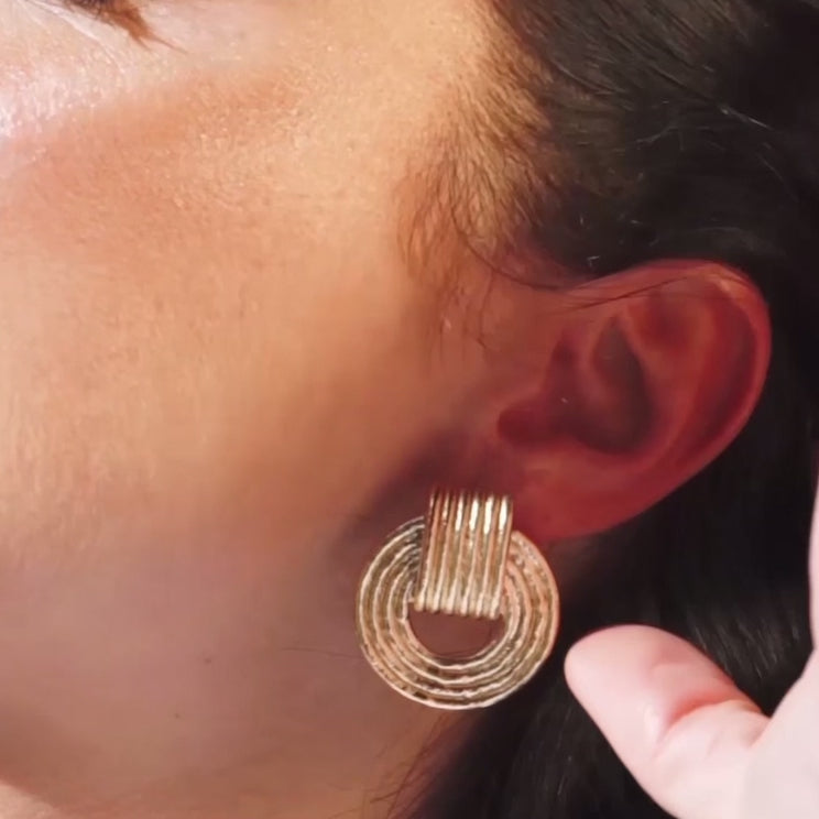 There is a definite retro feel to our Giulia chunky dangling hoop earrings. Their ridged design has volume and depth and will make you shine, day and night.