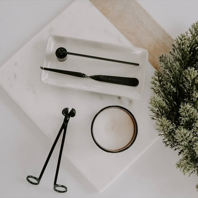 CAUTION: Candle Care Kit tools are to be used by adults only. Use caution when putting out flames with the wick dipper.