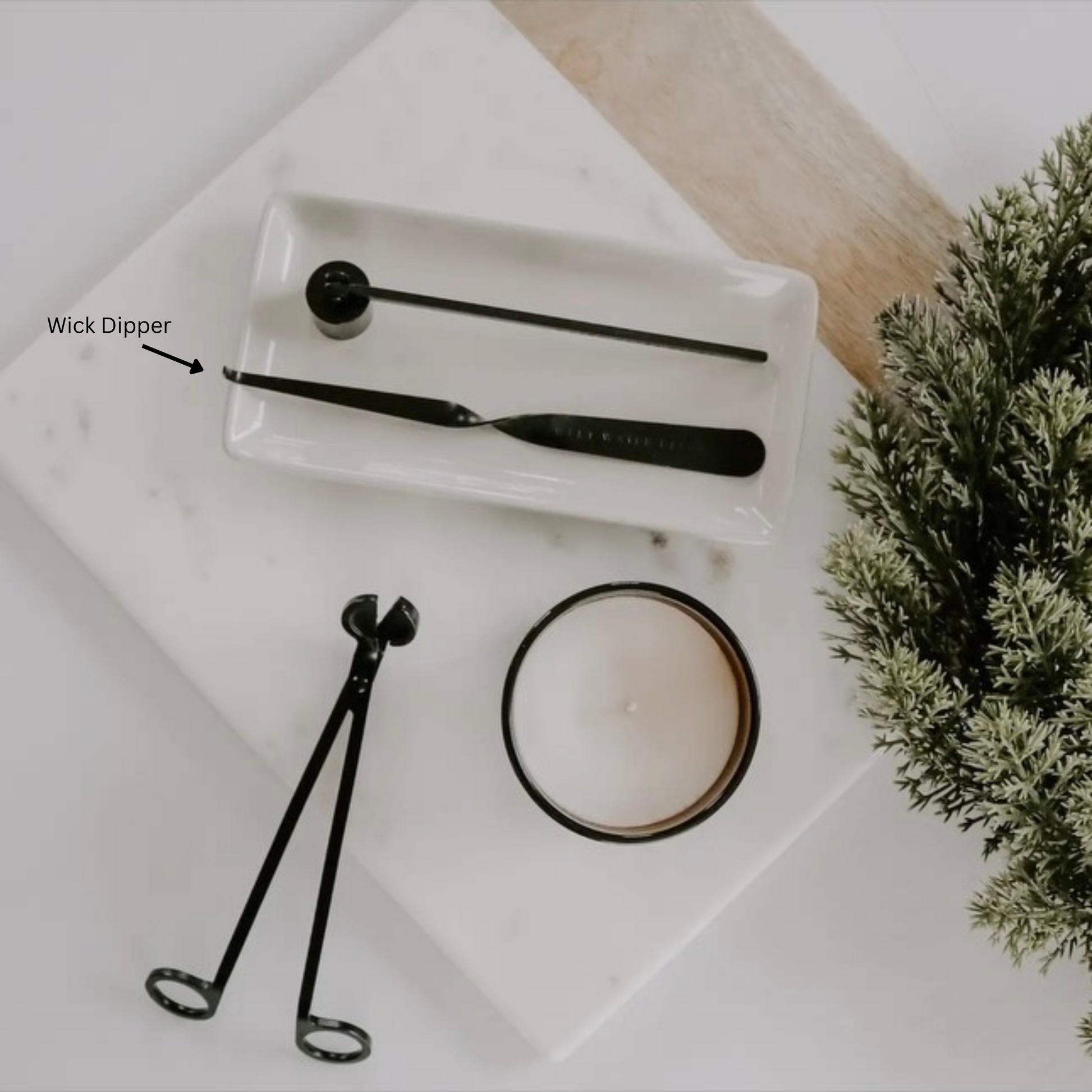 Proper candle care is essential to the longevity of every candle. Ensure your candle has the best care with a wick dipper. Wick dippers can be used to put out the flame of your candle or to re-center the wick if it migrated to side while the wax was melted.
